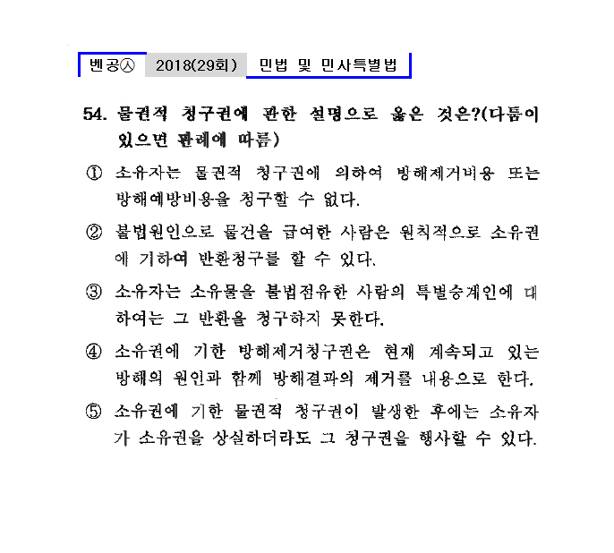29회㉦54. 물권적 청구권에 관한 설명으로 옳은 것은?(다툼이 있으면 판례에 따름)
