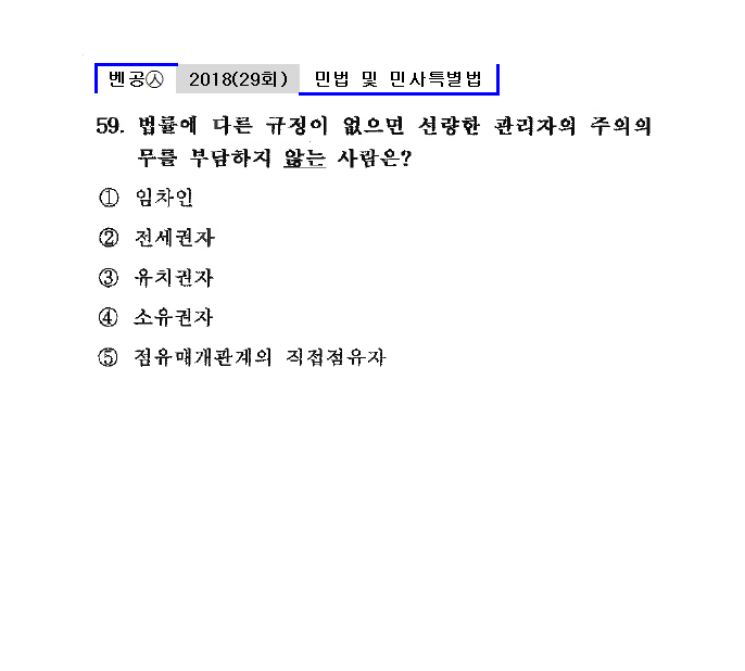 29회㉦59. 법률에 다른 규정이 없으면 선량한 관리자의 주의의무를 부담하지 않는 사람은?