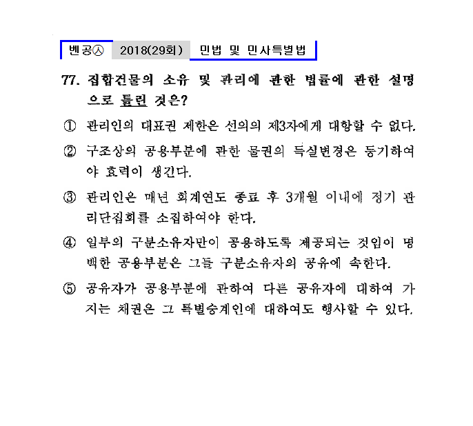 벤공㉦2018년 29회(71~80번) 민법 및 민사특별법*기출총정리