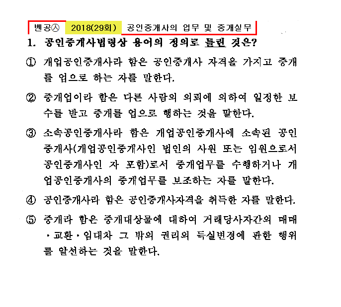 벤공㉦2018년 29회(1~10번) 중개사법*기출총정리