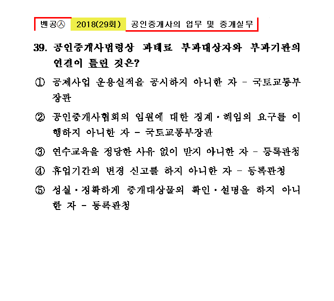 29회㉦39. 공인중개사법령상 과태료 부과대상자와 부과기관의 연결이 틀린 것은?