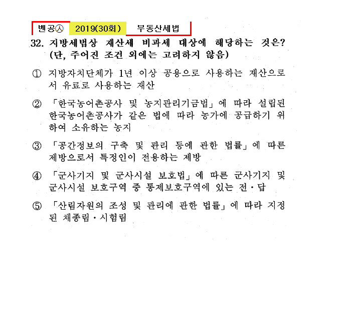 벤공㉦2019년 30회(33~40번) 부동산세법