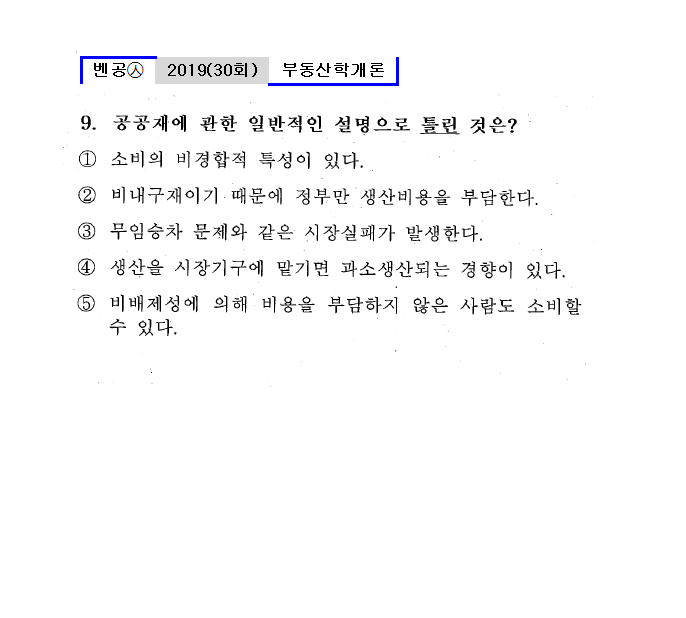 30회㉦09. 공공재에 관한 일반적인 설명으로 틀린 것은?