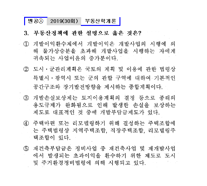 벤공㉦2019년 30회(01~10번) 부동산학개론*기출총정리